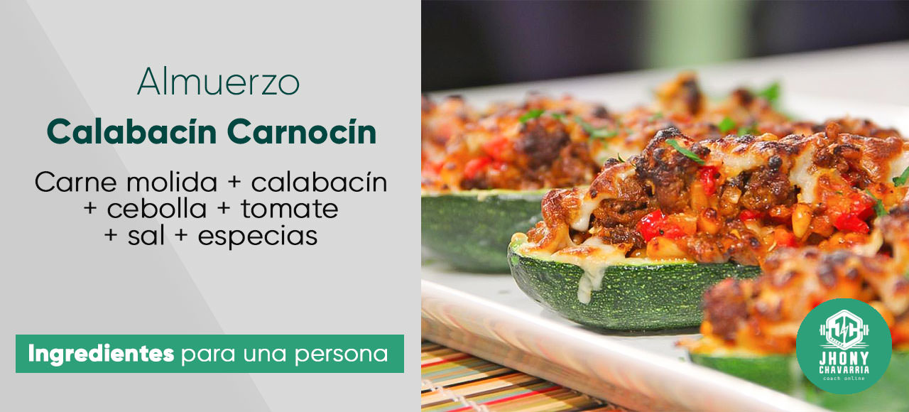 Cortar el calabacín a la mitad (a lo largo) y colocar encima la carne molida y echarle las especias al gusto.