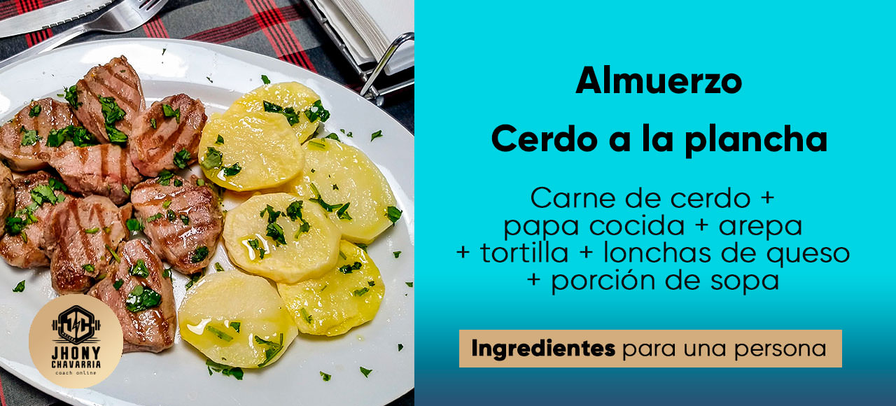 La carne de cerdo llevar a la plancha en dos finos cortes, salpimentar al gusto, Partir las papas en dos para facilitar la cocción, y poner en agua caliente durante 8 a 12 minutos.