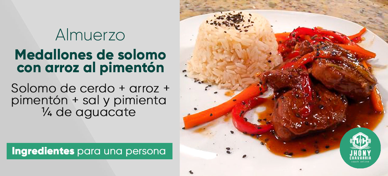 Servir los medallones en el plato y mezclar los pimentones con los 100g de arroz 5 cucharadas (20g por cucharada)