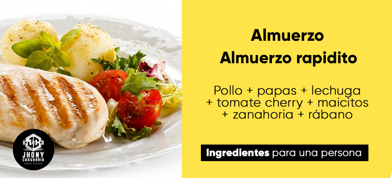 Se cocina en agua las dos papas con media cucharada de sal y se prepara la ensalada con la lechuga crespa, los tomates, los maicitos, la zanahoria y el rábano. Se puede aderezar la ensalada con una cucharada de aceite de oliva.