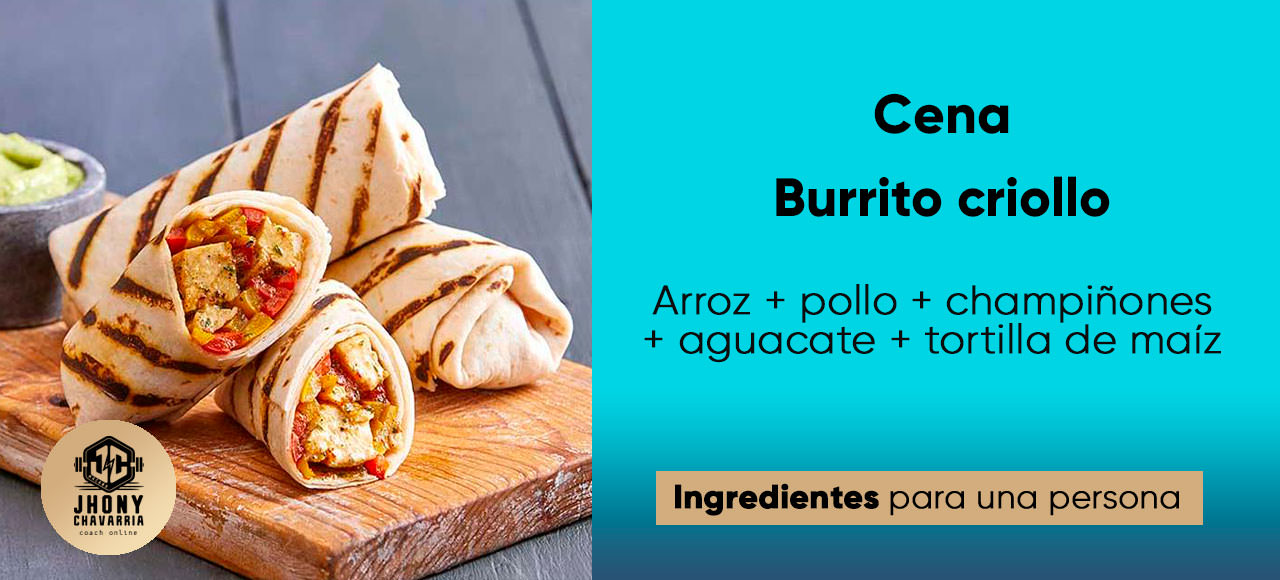 Trocear el pimentón y sofreír con los champiñones, luego agregar el pollo troceado con una pizca de sal, servir sobre la tortilla más dos cucharadas de arroz, agregar aguacate envolver y disfrutar.