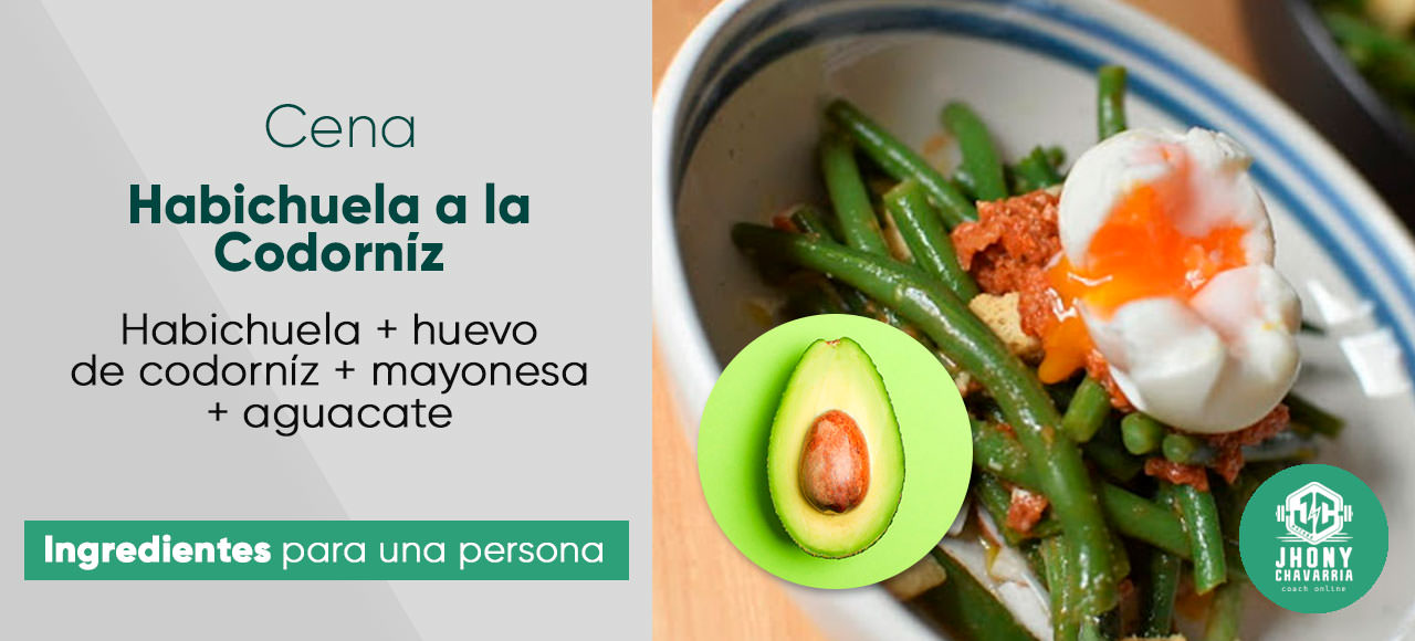 Combinar la mayonesa con las habichuelas, el aguacate y los huevos de codorniz