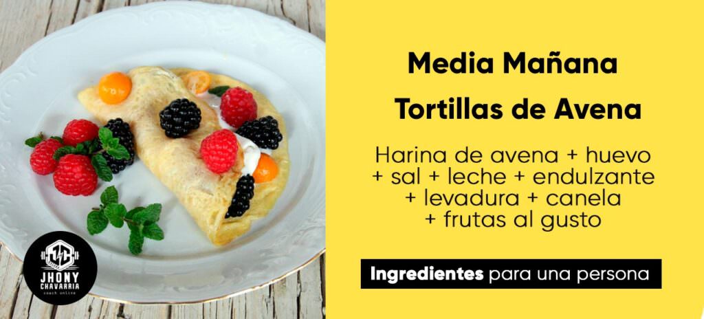 - Dos porciones de fruta al gusto: Fresa, banano, moras, manzana, entre otras.