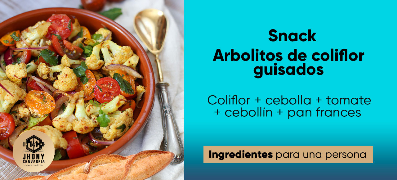 Se mezcla la coliflor cortado en arbolitos con el guiso y el cebollín. Se acompaña con la porción de pan francés.